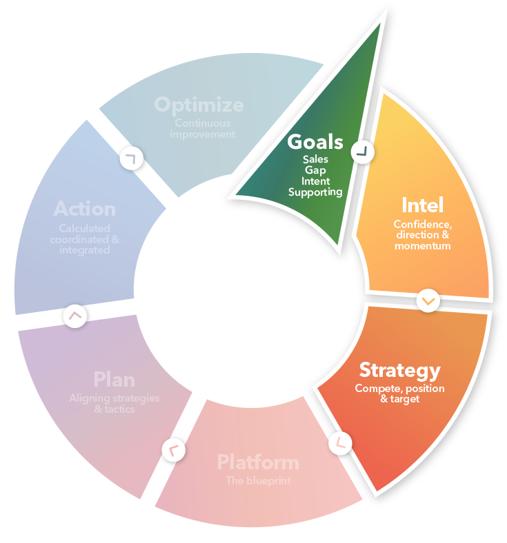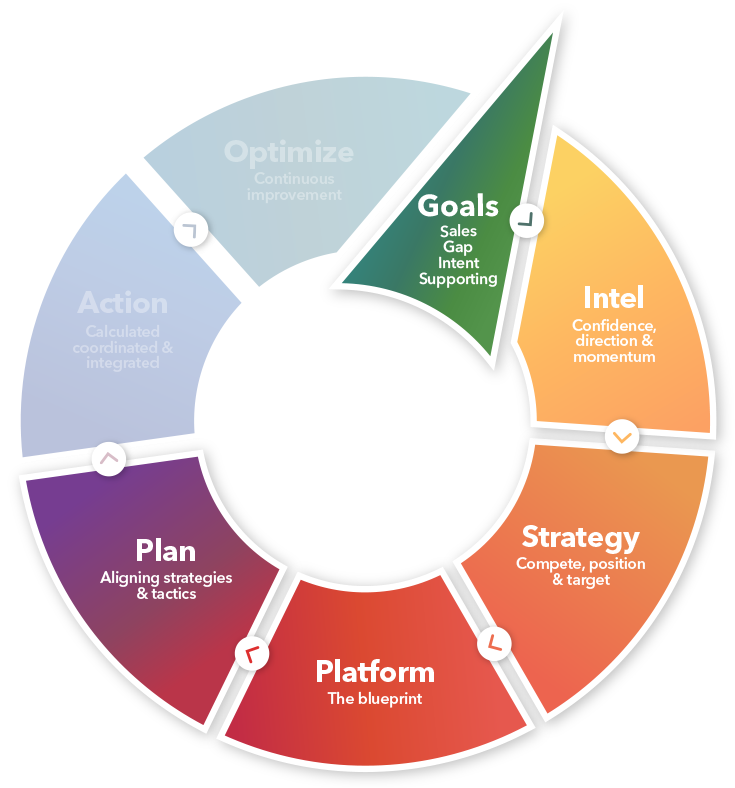 Marketing impacts your operations, culture, revenue, service and/or products. Clear goals are crucial. During Segment 1, your team will identify three key sales goals and identify other important goals that are specific to your company. Clear goals will set the direction and create accurate expectations..